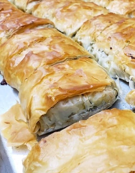 Housemade Spinach pies baked with fresh spinach and tasty greek feta and filo